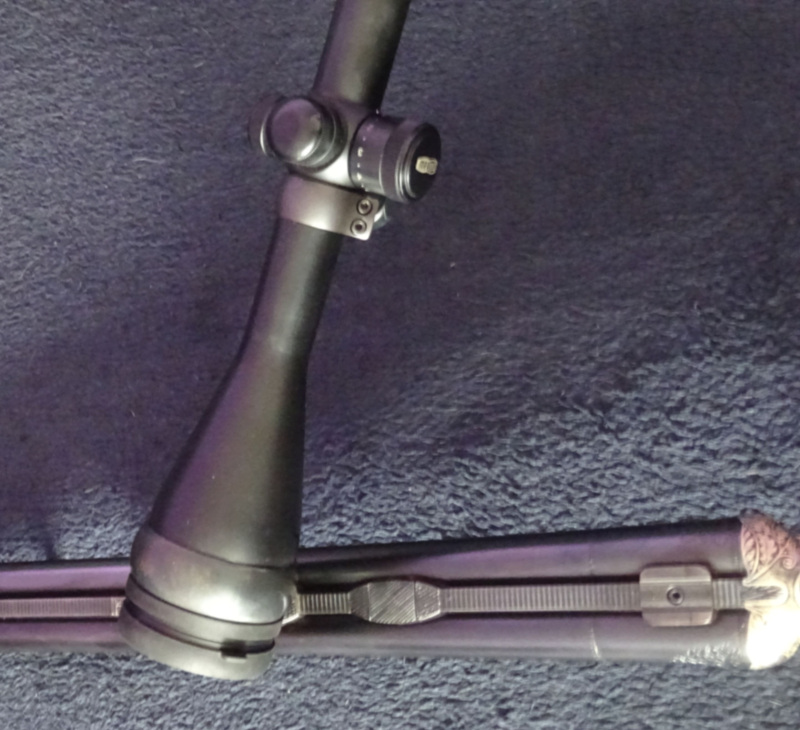 Otočná montáž na trojáku HEYM zaslepené jedno sedlo po předchozí montáži druhé sedlo použito k usazení předního kamene vyrobená odsazená objímka průměru 58mm přední uchycení za objektiv puškohledu zadní zámek pro rybinu 19mm