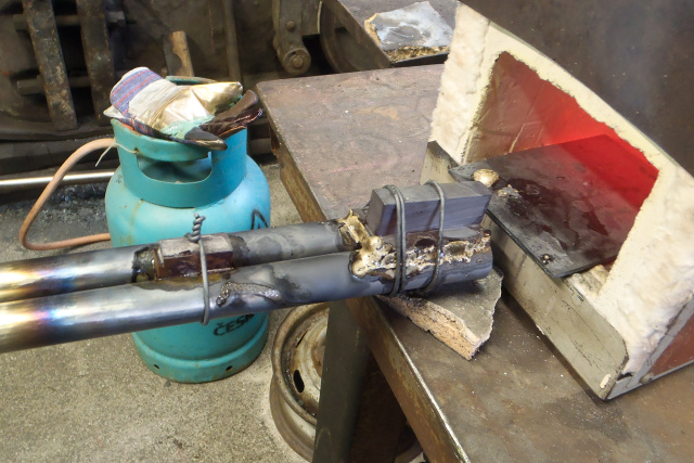 Pájení háku k hlavním tvrdou pájkou v peci a následné obrábění