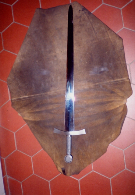 Série mečů Série mečů Stahovací nůž z řetězového damašku. Rukojeť pilovaná. Technické údaje:Zleva: 920 mm, 1100 mm, 980 mm