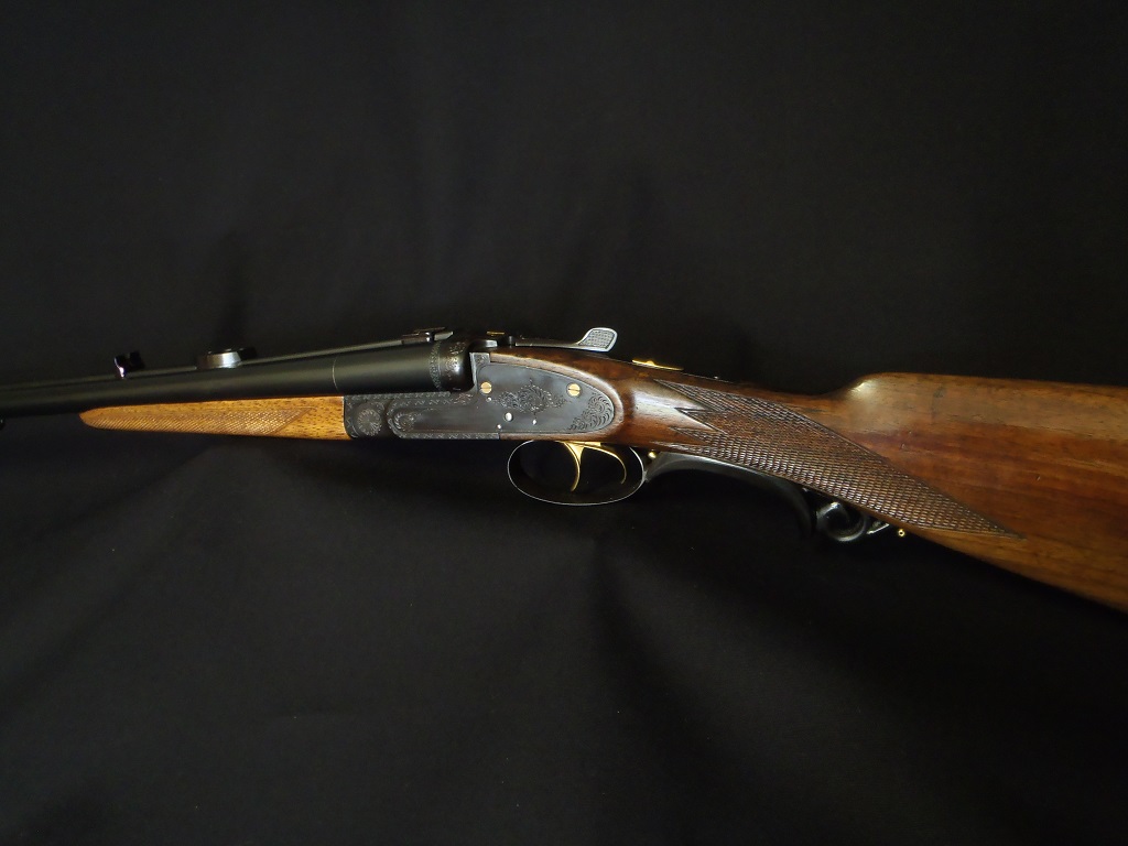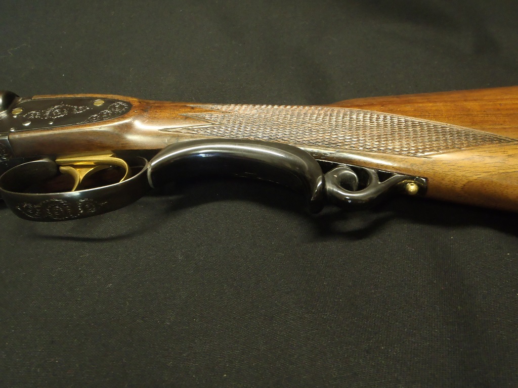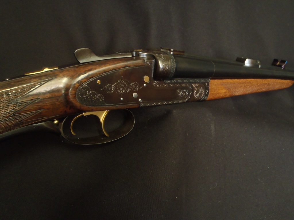 Zušlechtěný závěr z brokovnice ZP, zlacené doplňky nitridem titanu, opěrka pro prsty z buvolího rohu, napínáček na pravé - kulové spoušti, mechanická mířidla + otočná montáž, dlouhá vyvýšená horní lišta, optika ZEISS + montáž.