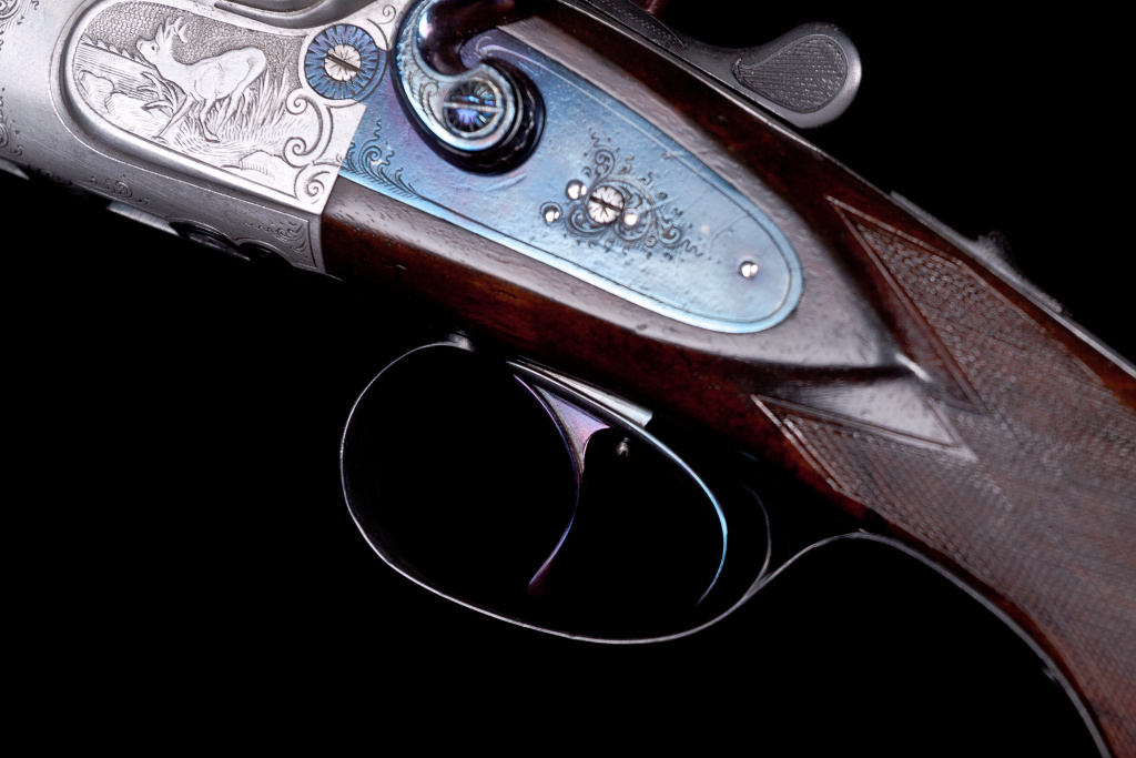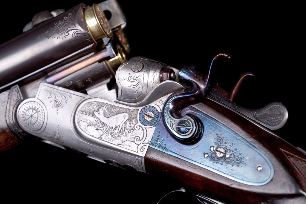V zadní části jsou umístěny kameny "Suhlské montáže" do které je nalícován dobový puškohled Ajack. Celá lišta je nově giloschovaná speciální rycí hlavou. Brokové hlavně jsou v místech komor poryty rozvilinami.