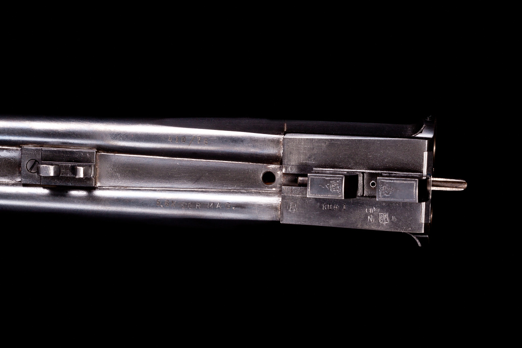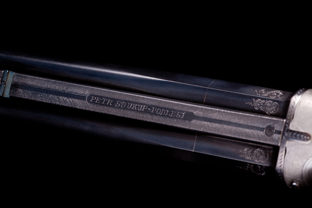 Hlavně jsou zapájeny do hlavňové objímky, která je částečně hraněná z důvodu snížení hmotnosti a přechází plynule do kuželových částí hlavní. Horní lišta je osazena stranově posuvným hledím a výškově nastavitelnou muškou. Zákazník nechtěl přípravu pro montáž optického zaměřovače a tak lišta tyto úpravy postrádá. Spodní lišta je zalícována a připájena k hlavním a je na ni přišroubováno poutko na řemen. U nábojových komor je svazek porytý jednoduchými rozvilinami, ryté jsou i spodní plochy háků. Celý svazek je načerněn několika vrstvami kyselého černění.