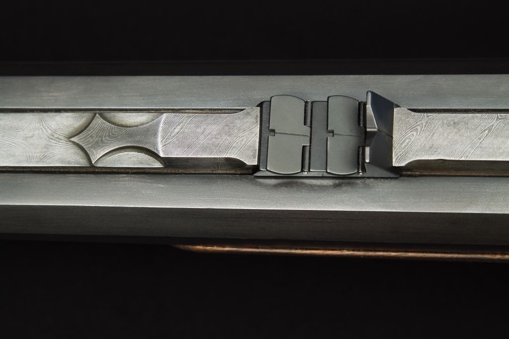 Napínací mechanizmus je překonstruován a ovládá se posuvným táhlem na krku pažby. Mechanizmus se tak může napnout těsně před výstřelem z důvodu vyšší bezpečnosti. Střelec může stejným táhlem napnutý mechanizmus zase uvolnit, což se děje i po otevření závěru. Spoušťový mechanizmus je vybaven napínáčkem. Zbraň má obě hlavně osmihranné, které plynule přecházejí do baskule. Mezi hlavněmi jsou vpájeny spodní a horní lišty, které jsou vykovány z damascenské oceli.