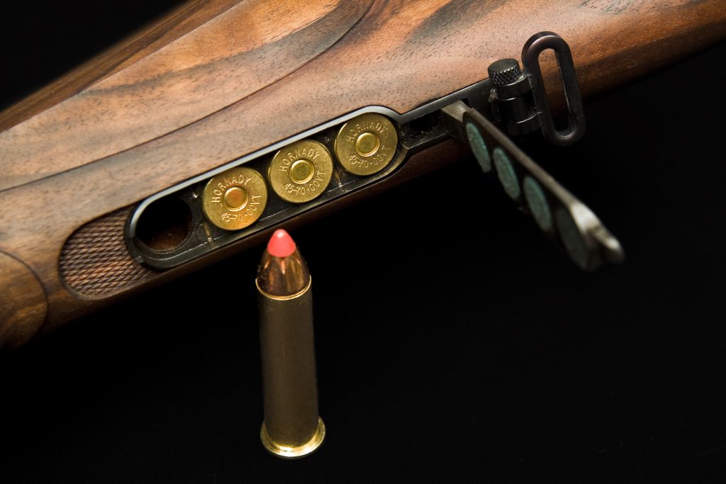 Zbraň je uložena v uzamykatelné kazetě z ořechového dřeva vyložené sametem. Ke zbrani je přiložen lovecký nůž s pouzdrem, který je vykován z jednoho kusu damascenské oceli. V kazetě jsou příhrádky na příslušenství – náboje, řemen a optický zaměřovač.